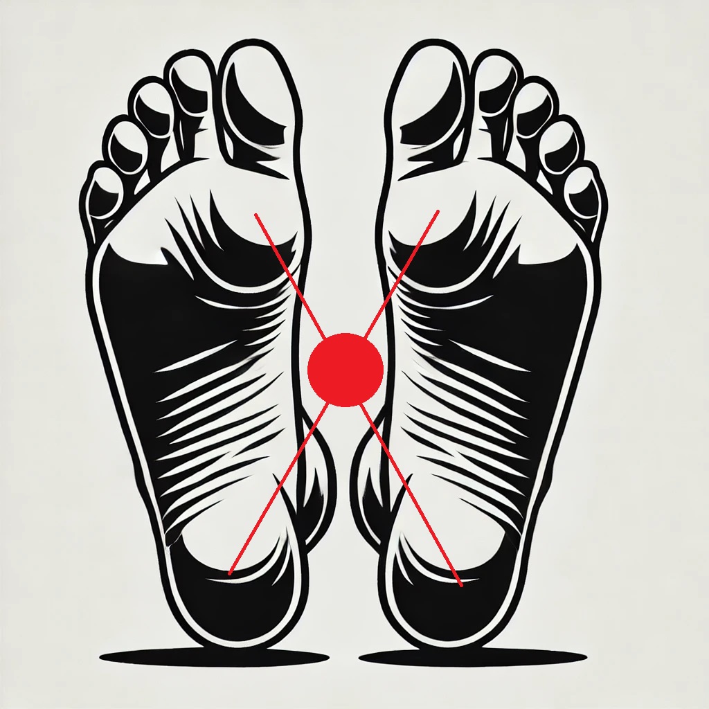 立ってる人の足の裏です。つま先側とかかと側をクロスさせた交差ポイントに重心を置く立ち方をするとバランスが取れます。正しい立ち方はまた後日にでも。