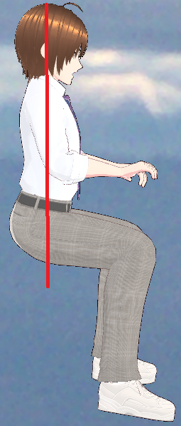 椅子に座ってる時に椅子の座面に触れてるお尻の骨盤部分(坐骨)と両足を結んだ線のクロスポイントに重心がかかりやすいのですが、正しい姿勢の場合、重心だけを考えると、、、あれ?!っと、